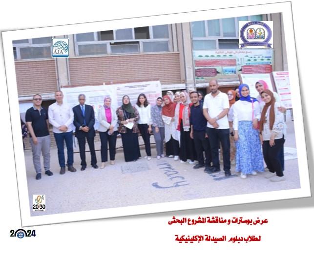 قام طلاب دبلوم الدراسات العليا ( صيدلة إكلينيكية ) بعرض بوسترات مقرر المشروع البحثى الخاص بكل مجموعة منهم فى حضور السادة أعضاء هيئة التدريس المشرفين على المشروعات البحثية للطلاب وذلك يوم الثلاثاء الموافق 15 أكتوبر 2024 م من الساعة العاشرة صباحاً وحتى الساعة الثانية ظهرا وذلك بساحة الكلية