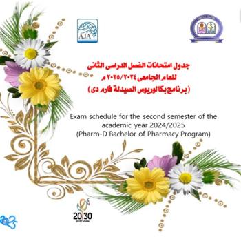 اعلان هام لطلاب كلية الصيدلة (بكالوريوس الصيدلة فارم دى وصيدلة اكلينيكية فارم دى) الفصل الدراسي الثانى للعام الجامعى 2025/2024