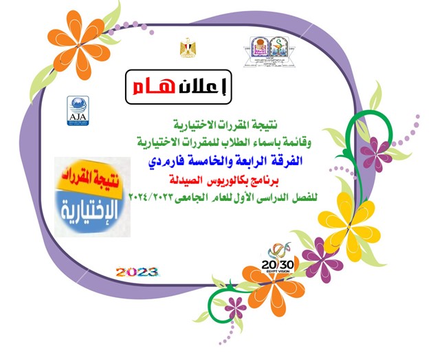 (تعديل) نتيجة المقررات الاختيارية وقائمة باسماء الطلاب للمقررات الاختيارية الفرقة الرابعة والخامسة فارم دي للفصل الدراسى الأول للعام الجامعى 2024/2023