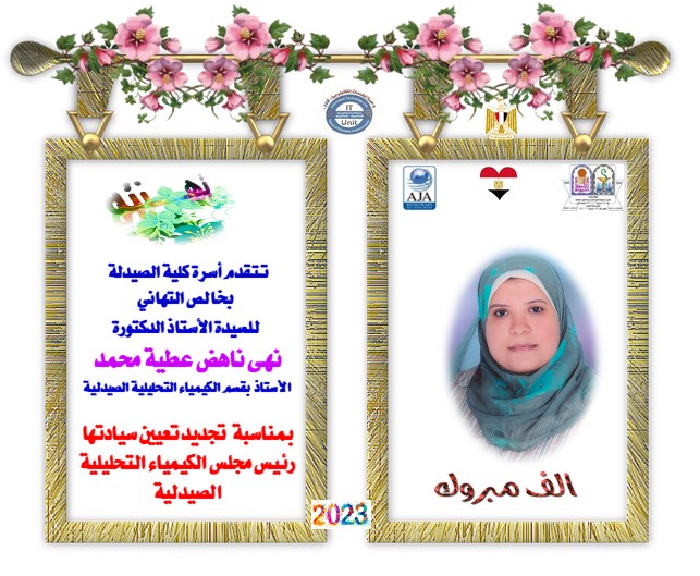 تهنئة للسيدة الأستاذ الدكتورة/ نهي ناهض عطية –الأستاذ بقسم الكيمياء التحليلية الصيدلية