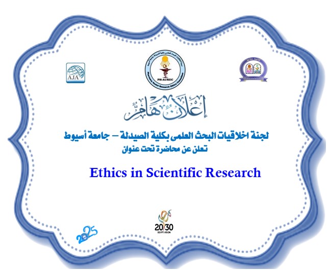 (تنويه) لجنة اخلاقيات البحث العلمى بكلية الصيدلة – جامعة أسيوط تعلن عن محاضرة تحت عنوان Ethics in Scientific Research