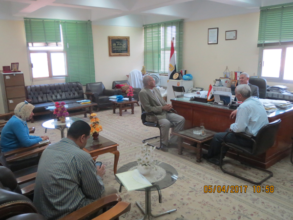 حيث قام السيد الأستاذ الدكتور/ محروس عثمان أحمد - القائم بأعمال عميد الكلية بإستقبال الفريق فى مكتبه بحضور السيد الأستاذ الدكتور/ أحمد محمد عبد المولى وكيل الكلية لشئون التعليم والطلاب للترحيب باللجنة ، ثم تم عرض فيلم تسجيلى عن أنشطة الكلية البيئية.