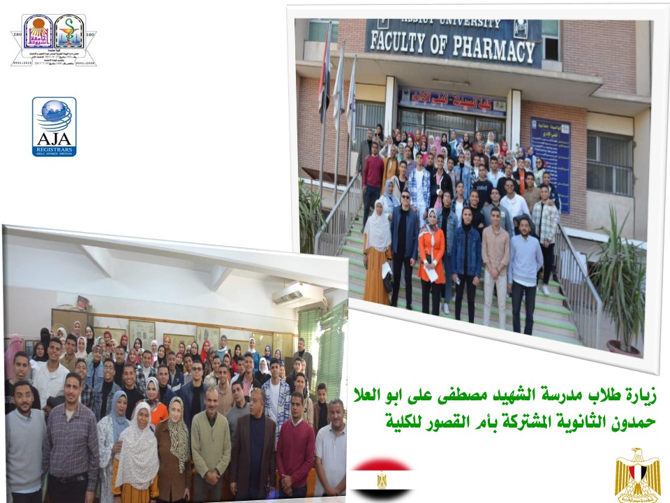 تحت رعاية السيد الأستاذ الدكتور / أحمد المنشاوى - القائم بأعمال رئيس الجامعة ، والسيد الأستاذ الدكتور / أحمد محمد عبدالمولى – عميد الكلية والقائم بأعمال نائب رئيس الجامعة لشئون التعليم والطلاب ، وبإشراف السيد الأستاذ الدكتور / محمد محمود عبد اللطيف – وكيل الكلية لشئون خدمة المجتمع وتنمية البيئة ، والسيد الأستاذ الدكتور / حسن رفعت حسن – وكيل الكلية لشئون التعليم والطلاب ، زار الكلية عدد من طلاب مدرسة الشهيد مصطفى على ابو العلا حمدون الثانوية المشتركة بأم القصور ، حيث قام الطلاب بزيارة متحف النباتات الطبية بقسم العقاقير بالكلية وكانت فى إستقبالهم السيدة الأستاذ الدكتور / سعاد عبداللطيف حسن – رئيس مجلس قسم العقاقير ، حيث قامت سيادتها بتعريفهم بمحتويات المتحف ، وذلك يوم الخميس الموافق 24 نوفمبر 2022م