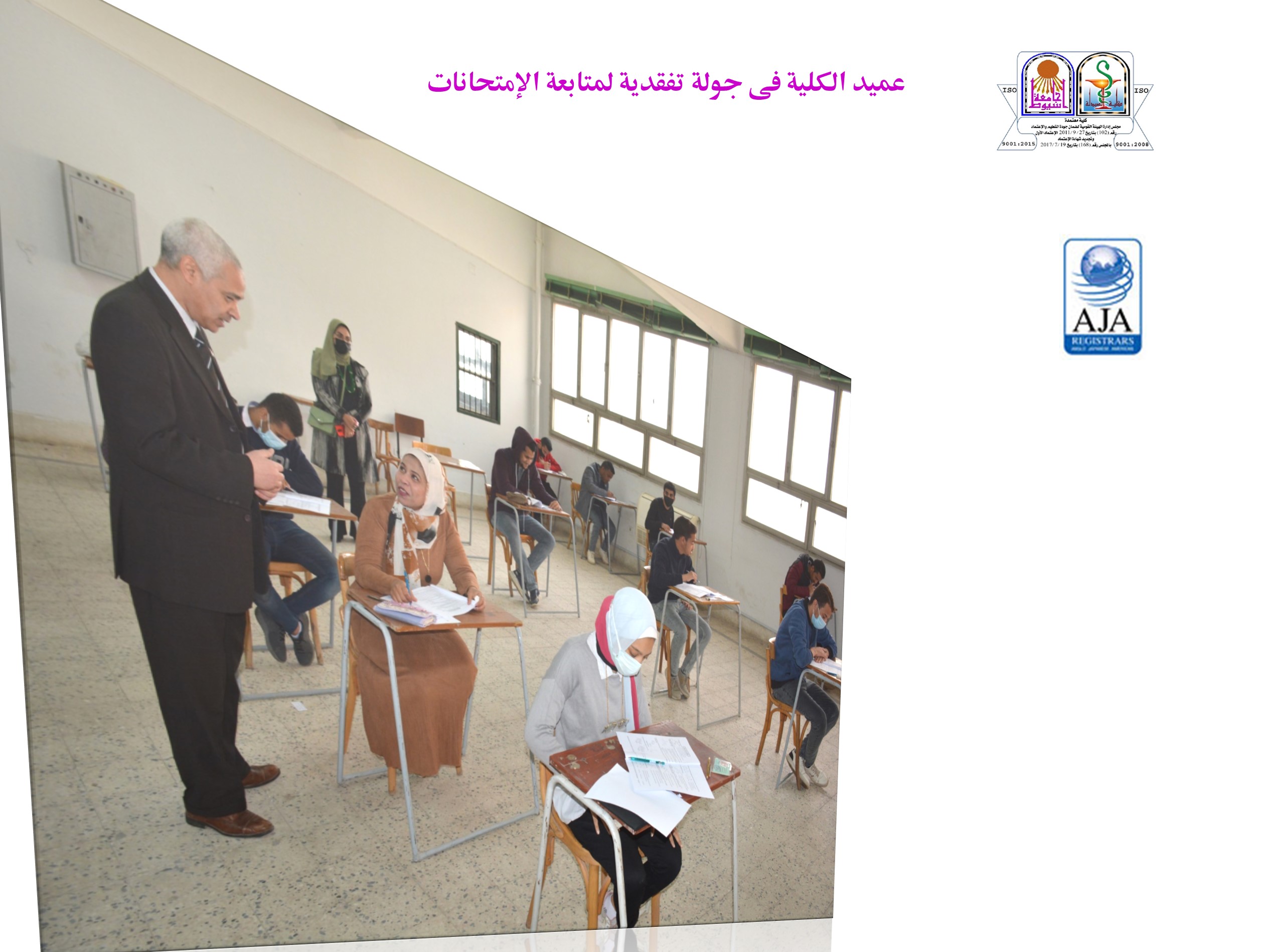 Prof. Dr. / Ahmed Mohamed Abdel Mawla - Dean of the Faculty, made an inspection tour to follow up the exams for the first semester of the academic year 2021/2022 AD ensure compliance with all instructions regulating the examination process, This was done on Saturday, 1/1/2022 .