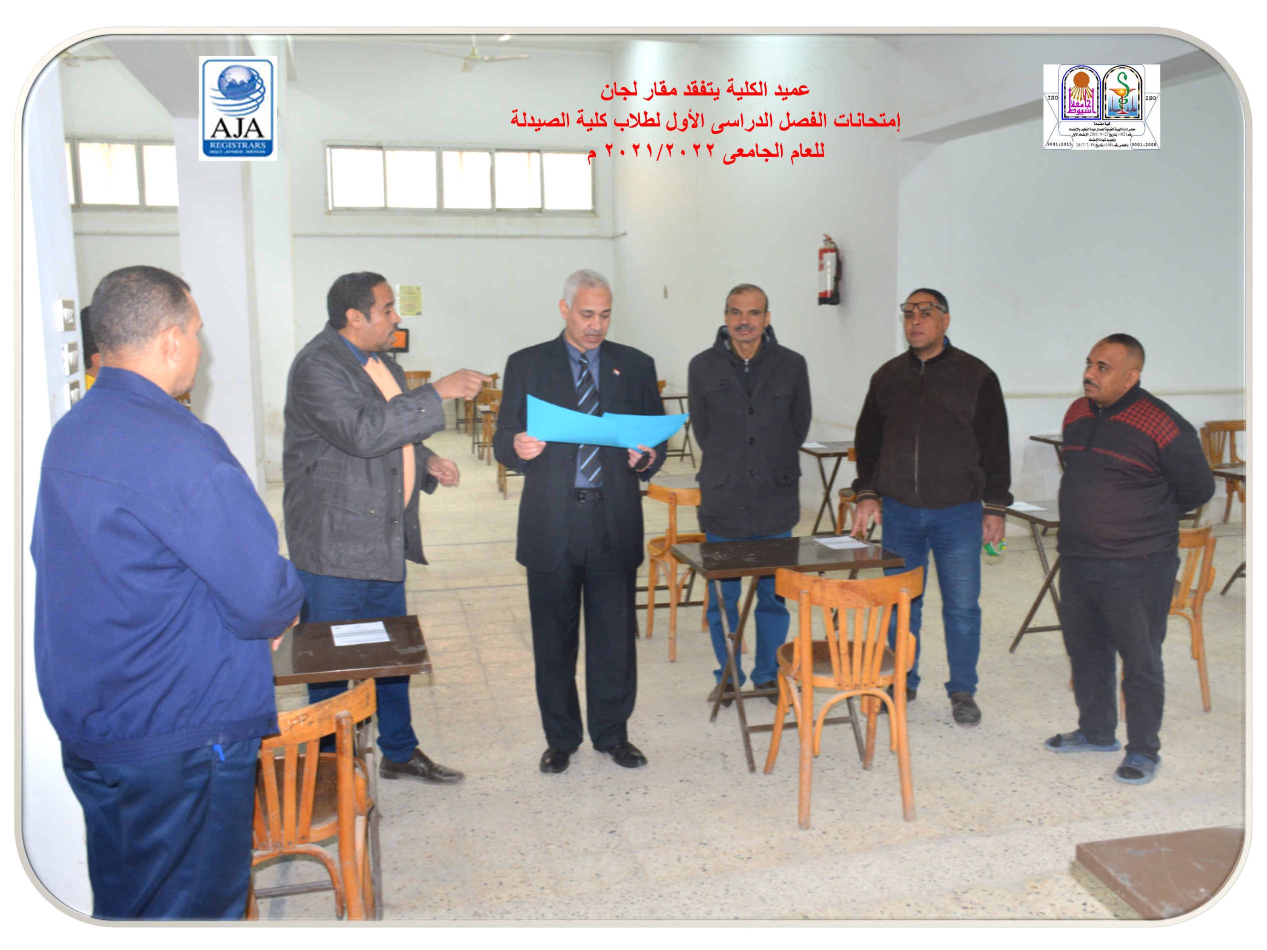 For the preparations for the start of the exams, which are scheduled to start on Saturday, corresponding to 1/1/2021, Prof. Dr. Ahmed Mohamed Abdel Mawla - Dean of the Faculty, accompanied by Mr. Abdel Hafez Ali Abdel Hafez - Director of Student Affairs, made an inspection tour of the examination committees of the first semester of the academic year 2021/2022, examination halls and clinical pharmacy examination committees, in order to ensure finishing of all examination-related directives from the equipment of the committee preparations, the provision of all services, the completion of all maintenance work and their preparation by all means to create the appropriate atmosphere for students to perform exams.
