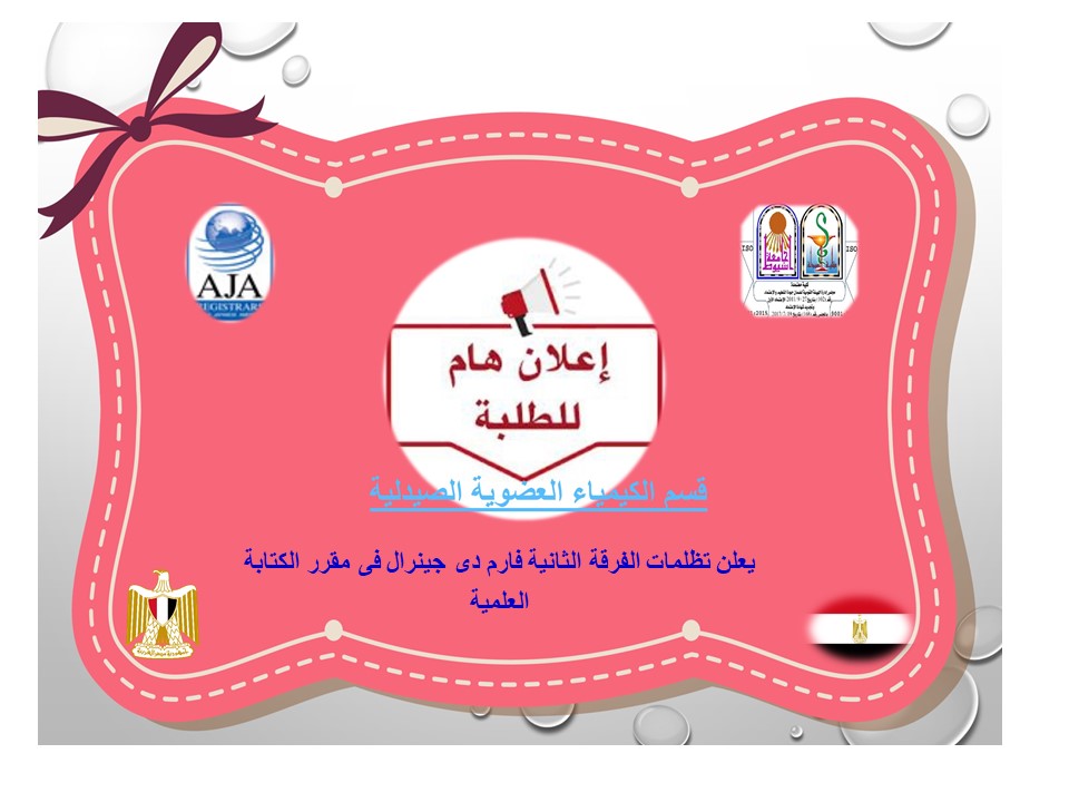 The Department of Pharmaceutical Organic Chemistry announces the grievances of the second year, Pharm D, regarding the scientific writing course 27 November 2022