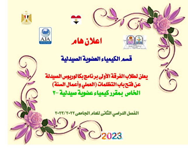 The Department of Pharmaceutical Organic Chemistry announces to the students of the first year of the Bachelor of Pharmacy program the starting for practical grievances and mid-term exam grades of the course of Pharmaceutical Organic Chemistry-2