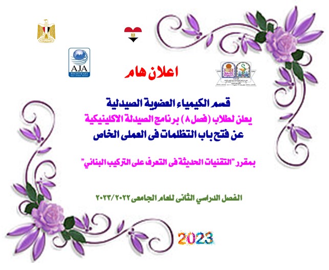 The Department of Pharmaceutical Organic Chemistry announces to the students (Semester 8) of the Clinical Pharmacy Program the start for grievances in mid-term grades of the course "Recent Techniques of Structure Elucidation"