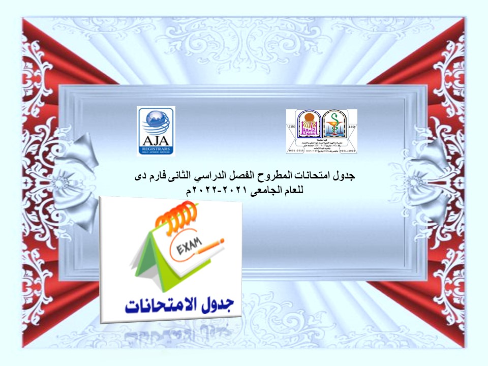 Exam schedule for offered courses the second semester, Pharm D, for the academic year 2021-2022 12 April 2022