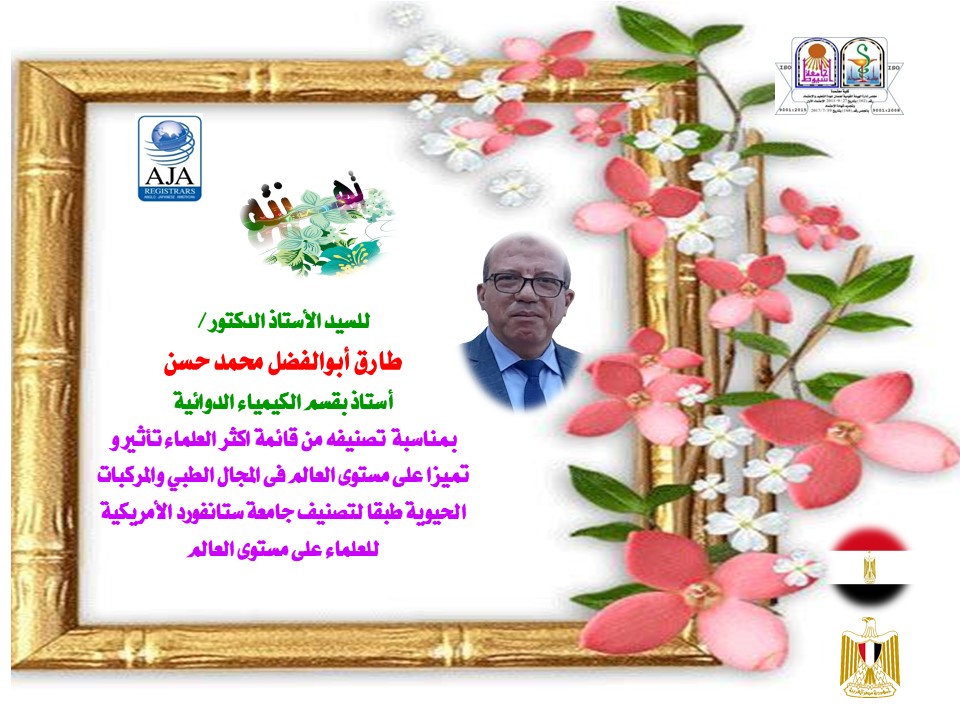 The family of the Faculty of Pharmacy extends its sincere congratulations to Prof. Dr. Tarek Aboul-Fadl Mohammad Hassan - Professor in the Department of Medicinal Chemistry - on the occasion of his classification from the list of the most influential