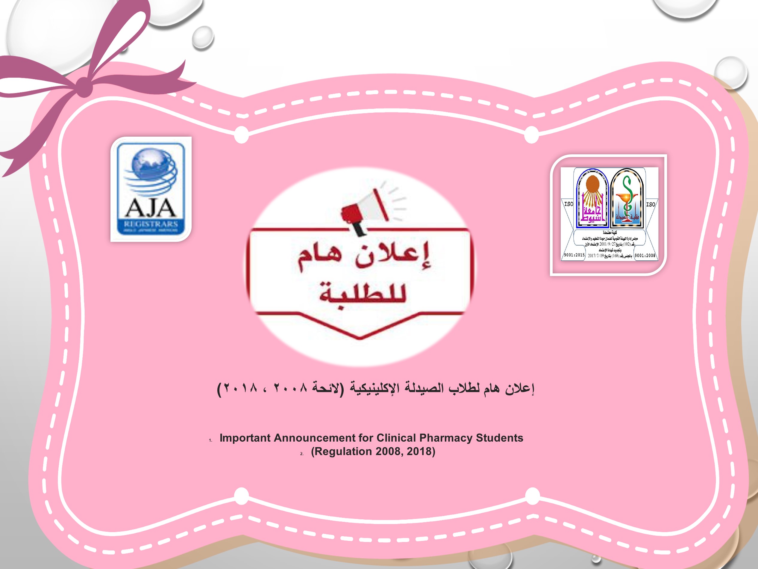 Important Announcement for Clinical Pharmacy Students (Regulation 2008, 2018)