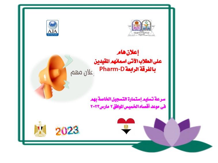 Important Announcement The following students whose names are enrolled in the fourth year Pharm-D must quickly submit their registration form no later than Thursday, March 2, 2023