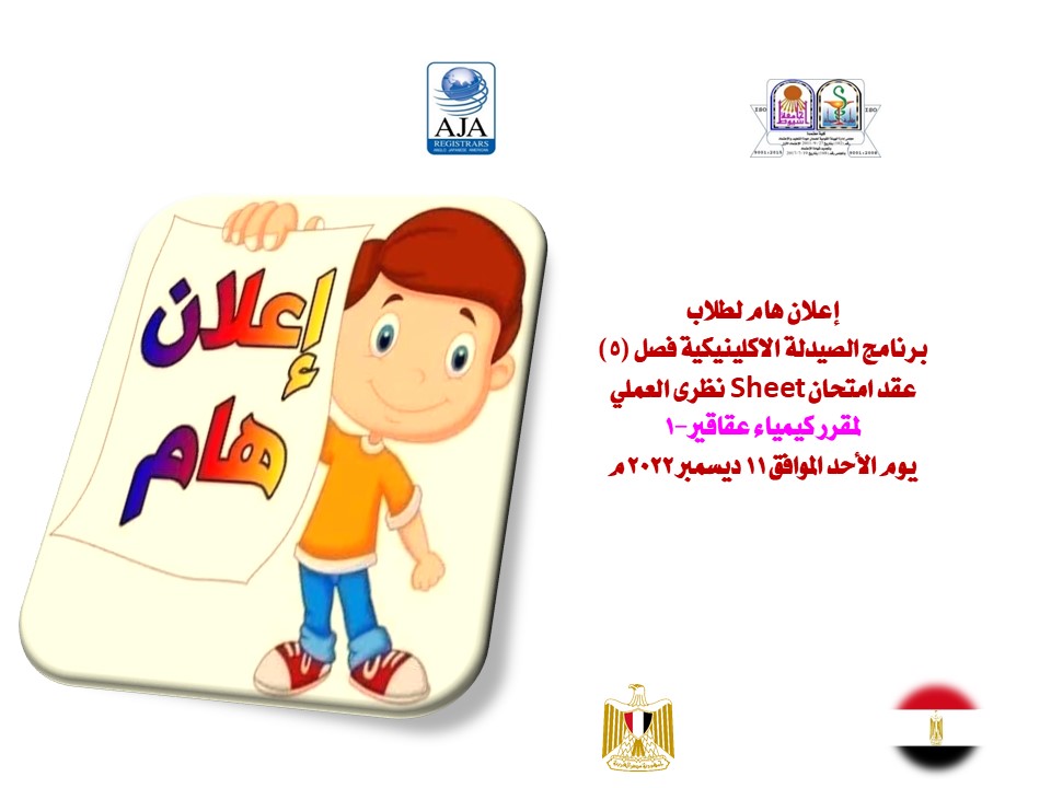 An important announcement for students of the clinical pharmacy program, class (5), holding a practical theoretical exam for the Phytochemistry -1 course on Sunday, December 11, 2022