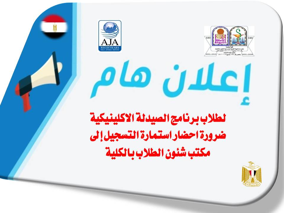 Important announcement for students of the Clinical Pharmacy Program, students should bring the registration form to the Student Affairs Office of the faculty