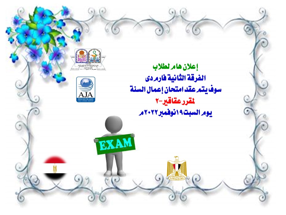 Important announcement for students of the second year Pharm D The mid-term exam for Pharmacognosy-2 will be held on Saturday, November 19, 2022 7 November 2022
