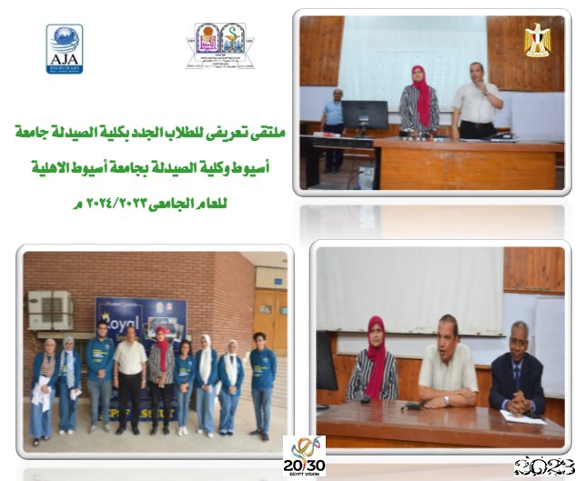 The Faculty of Pharmacy organized an introductory meeting for new students at the Faculty of Pharmacy, Assiut University and students from the Faculty of Pharmacy at Assiut National University for the academic year 2023/2024.