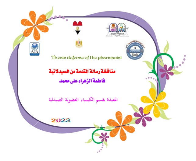 The master's thesis defense by the pharmacist/ Fatma Al-Zahraa Ali Muhammad - Teaching Assistant in the Department of Pharmaceutical Organic Chemistry - on Tuesday, May 9, 2023