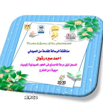 Thesis defense of the pharmacist/ Ahmed Sabra Rashwan - registered to obtain a master’s degree in pharmaceutical sciences (Biochemistry) on Tuesday, September 12, 2023