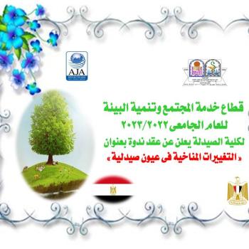 Community Service and Environmental Development Sector for the Academic Year 2022/2023 of the Faculty of Pharmacy announces the holding of a symposium entitled Climate Changes in the Pharmacy Eyes