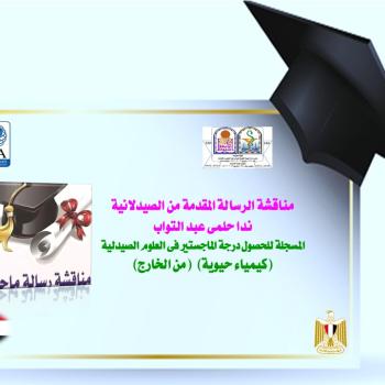 Thesis defense by the pharmacist / Nada Helmy Abdel Tawab - who is registered for a master's degree in pharmaceutical sciences (biochemistry)