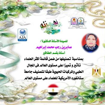 The family of the Faculty of Pharmacy extends its sincere congratulations to Prof. Dr. Sabreen Ragab Mohamed Ibrahim - Professor of the Department of Pharmacognosy on the occasion of her classification among the list of the most influential