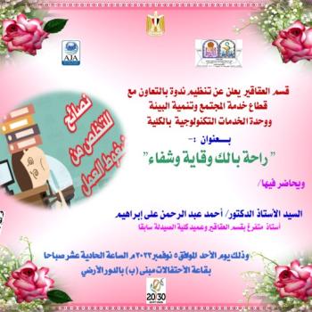 The Department of Drugs, in cooperation with the Community Service and Environmental Development Sector and the Technological Services Unit at the Faculty, is organizing a symposium entitled: Peace of Mind, Prevention and Healing.