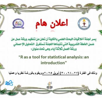 The Research Ethics Committee at the faculty announces the organization of a workshop on Statistical Analysis, as part of the training plan adopted by the committee. The workshop will span three days and is titled: "R as a tool for statistical analysis: a