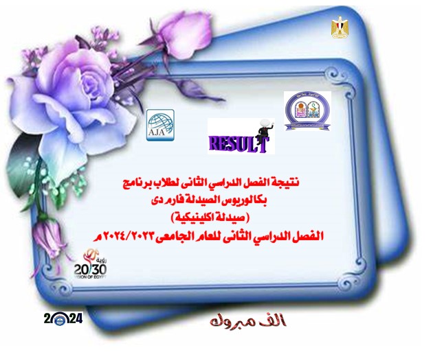 The results of the second semester for students of the Bachelor of Pharmacy (Clinical Pharmacy) program for the academic year 2023/2024 27 June 2024 Click ? Click to enter the results of the second semester for students of the Bachelor of Pharmacy program (Clinical Pharmacy)