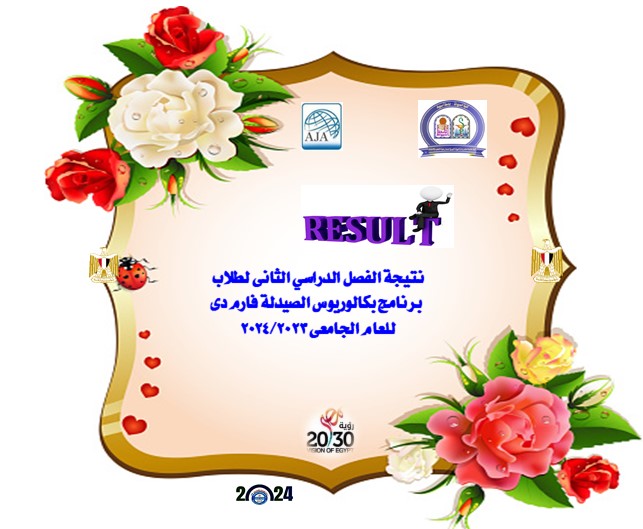 The results of the second semester for students of the Bachelor of Pharmacy program for the academic year 2023/2024 27 June 2024 Click ? Click to enter the results of the second semester for students of the Bachelor of Pharmacy program
