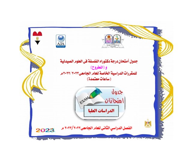 Schedule of Doctor of Philosophy degree examinations in pharmaceutical sciences (offered) for special courses for the academic year 2022/2023 (credit hours)