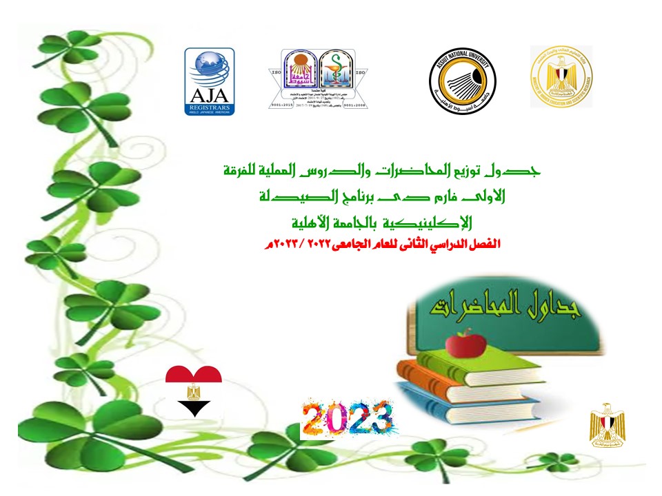 Schedule of lectures and practical lessons for the Second year Pharm D Clinical Pharmacy Program at Ahlia University for the academic year 2022/2023 8 February 2023