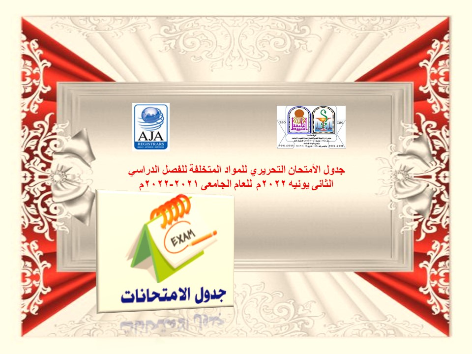 Schedule of the written examination for the second semester June 2022 for the academic year 2021-2022 12 April 2022