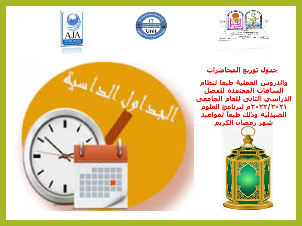 Schedules of lectures and practical lessons for the second semester of the academic year 2021/2022 for the Pharmaceutical Sciences Program, according to the dates of the holy month of Ramadan