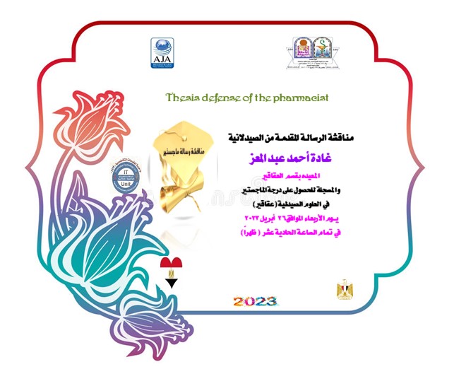 Thesis defense of the pharmacist/ Ghada Ahmed Abdel Moez - Teaching Assistant in the Department of Pharmacognosy - on Wednesday 26 April 2023 18 April 2023
