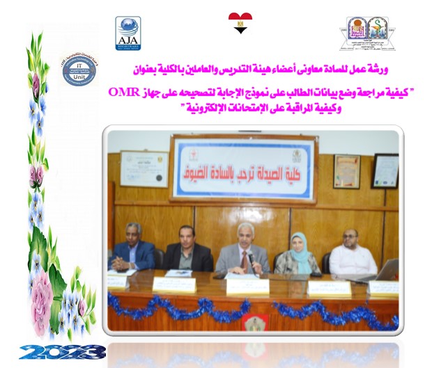 Under the auspices of Prof. / Ahmed El-Minshawy - President of the University, Prof. / Ahmed Mohamed Abdel-Mawla - Dean of the Faculty and Acting Vice-President for Education and Student Affairs, opened a workshop for the assistant faculty members and Faculty employees entited (How to review the student's data on the answer form to correct it on the OMR device and how to monitor the electronic exams, within the framework of the Faculty ’s preparations for the exams of the second semester of the academic year 2022/2023, where the workshop was organized under the supervision of Prof. Hassan Refaat Hassan - Vice Dean for Education and Student Affairs and in the presence of Prof. Dr. / Mohamed Mahmoud Abdel Latif - Vice Dean for Community Service and Environmental Development Affairs, and Dr. / Mustafa Ahmed Hussein - Head of the Department of Pharmaceutical Organic Chemistry, where Prof. Dr. / Soad Abdel Latif Hassan - Head of the Pharmacognosy Department and Technology services Unit Director lectured in the workshop , and Dr. Ahmed Safwat Abo Raya - Acting Head of the Pharmaceutical Chemistry Department and supervisor of e-learning