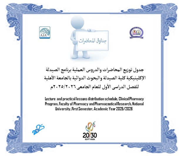 Lecture and practical lessons schedule, Clinical Pharmacy Program, Faculty of Pharmacy and Pharmaceutical Research, National University, First Semester, Academic Year 2025/2026