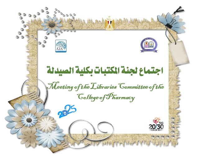 God willing, the meeting of the Libraries Committee at the Faculty of Pharmacy Pharmacy on Thursday, October 16, 2025, at 12:00 P.M (noon) at the invitation of Professor Mrs. Professor Dr. Gihan Nabil Hassan Fetih