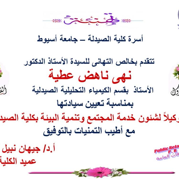 Congratulations on the appointment of Prof. Dr. Noha Nahedj Atia Mohamed - as Vice Dean for Community Service and Environmental Development Affairs