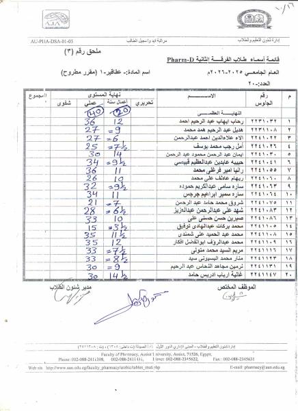 Do you have any questions? (088) 2080369 - 2345622 Pharmacy_QAAU@pharm.aun.edu.eg