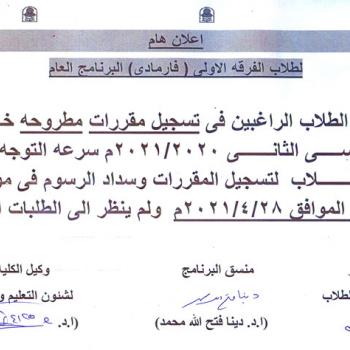 important announcement for students of the first year, Pharm de General Program (rush to go to the Student Affairs Administration to register courses and pay fees)