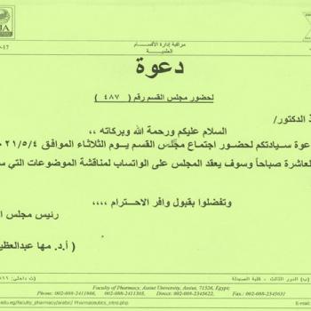 Meeting of the Council of the Pharmaceutics Department, Faculty of Pharmacy on Tuesday 4-5-2021.