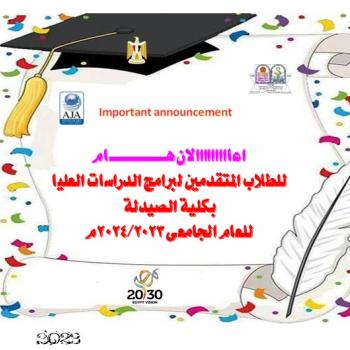 important Anouncement for students applying for postgraduate programs at the faculty of Pharmacy for the academic year 2023/2024