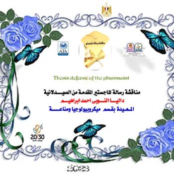 The master’s thesis defense of the pharmacist/ Dalia Al-Noubi Ahmed Ibrahim - teaching assistant in the (Microbiology and Immunology) Department on Wednesday, September 13, 2023.