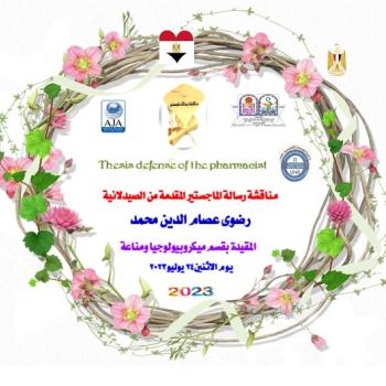 Master's thesis defense of the Pharmacist/ Radwa Essam El-Din Mohamed - enrolled in the Department of Microbiology and Immunology - on Monday, July 24, 2023