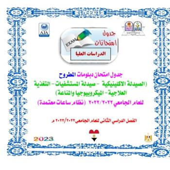 Schedule of Diploma Examination (Clinical Pharmacy - Hospital Pharmacy - Clinical Nutrition - Microbiology and Immunology) offered for the academic year 2022/2023 (credit hours system)