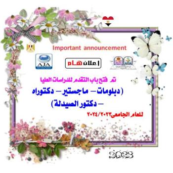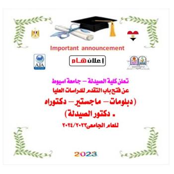The Faculty of Pharmacy - Assiut University announces: the starting for applying for postgraduate studies (Diploma - Master - Doctor - PharmD) for the academic year 2023/2024