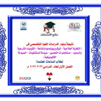 Result of a specialized postgraduate diploma in (clinical nutrition - microbiology and immunology - forensic chemistry and toxicology - cosmetics - hospital pharmacy - clinical pharmacy) for students of credit hours for the first semester of the academic