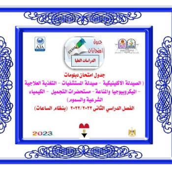 Schedule of Diploma Examination (Clinical Pharmacy - Hospital Pharmacy - Clinical Nutrition - Microbiology and Immunology - Cosmetics - Forensic Chemistry and Toxicology) Second Semester 2022/2023 (credit hour system)