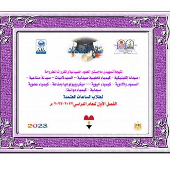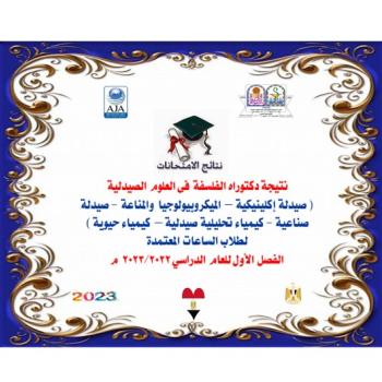 The result of a PhD in Pharmaceutical Sciences - (Clinical Pharmacy - Microbiology and Immunology - Industrial Pharmacy - Pharmaceutical Analytical Chemistry - Biochemistry) for students of credit hours for the first semester of the academic year2022/2023