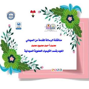 Thesis defense of the pharmacist Mohamed Ahmed Mahmoud Mohamed Al-Maeed, Teaching assistant at the Department of Pharmaceutical Organic Chemistry
